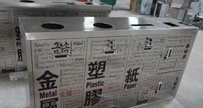 多面創(chuàng)意造型不銹鋼垃圾桶廠家生產(chǎn)工藝流程:創(chuàng)意圖紙?jiān)O(shè)計(jì),經(jīng)確認(rèn)后采用激光切割機(jī)輸入創(chuàng)意垃圾桶開(kāi)料圖,就得到了制作這款創(chuàng)意垃圾桶的各部件材料。不銹鋼垃圾桶廠...