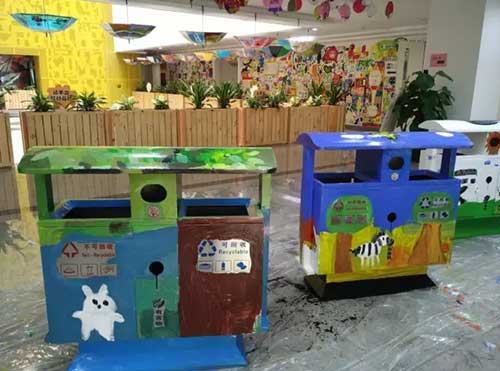 2月28日,繪本班的孩子們?cè)诿佬g(shù)部曾老師的帶領(lǐng)下,開展了“美化環(huán)境,裝點(diǎn)新宮”的繪畫活動(dòng),原本被置放在青宮各個(gè)角落的垃圾桶一天之間舊貌換新顏,搖身變成了一件件美麗可愛的藝術(shù)品!