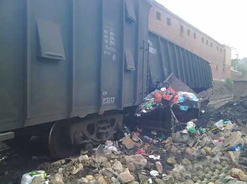 垃圾箱太近導(dǎo)致貨運(yùn)火車車廂翻到
