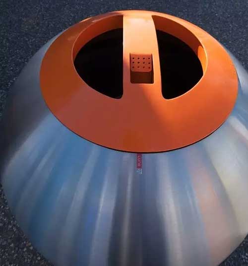 投放口在球身頂部,圓環(huán)形的口蓋顏色可以隨意搭配選擇,就目前所見,在德國柏林采用了醒目的橙色,在荷蘭皮爾默倫德采用了低調的黑色。蓋子上細心設計了一小塊凹槽作為公共煙灰缸專供行人在這里站立吸煙并放置掐滅了的煙蒂。